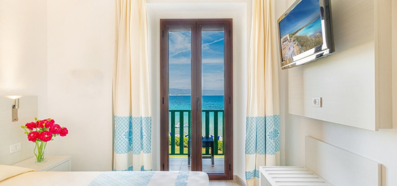 Splendid suite with sea view, composed of a single and welcoming living room and two independent bedrooms with bathrooms and small balconies each. Panoramic view of the Gulf of Alghero.