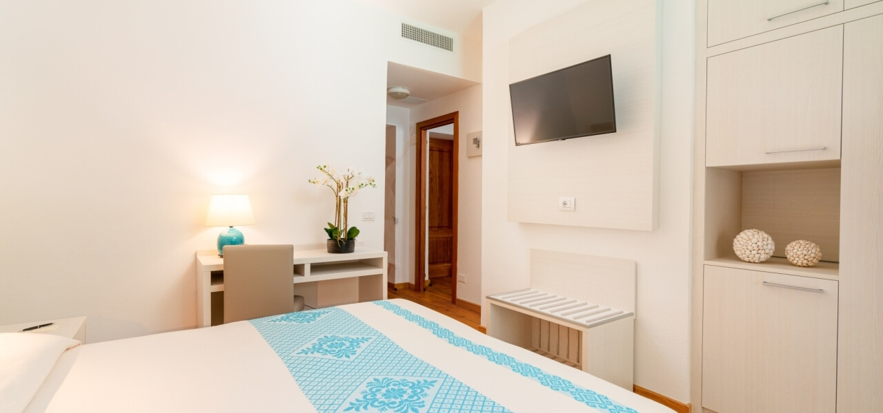 100 rooms with fully renovated private bathrooms to allow you to re-charge your batteries like never before, amid the fragrances of the pine trees and the sea.
