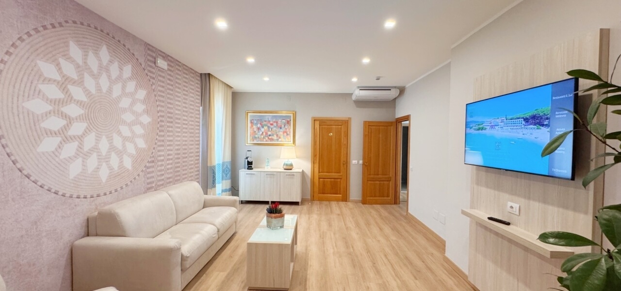 The newest and most spacious room in the hotel is ready to welcome you from April 2024. Two bedrooms each with its own services and comforts. A large living room with sofa bed and armchair.