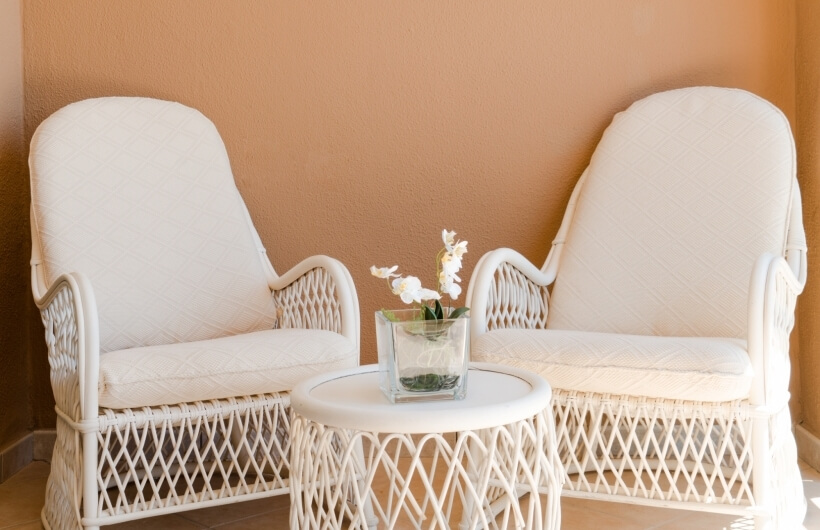 Small private balcony with table and chairs